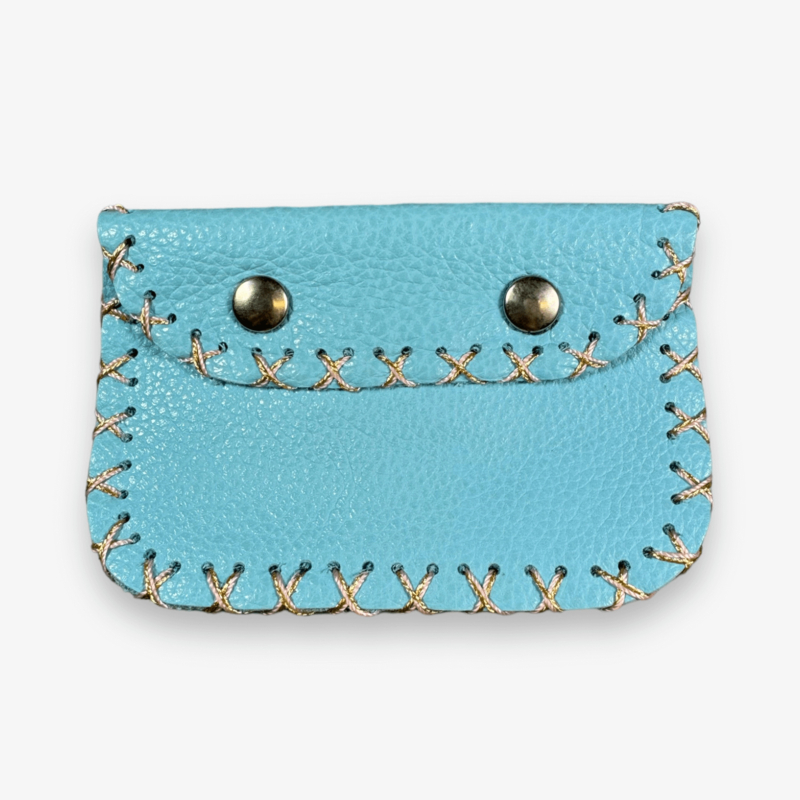 Made from leftover leather. Equipped with 2 snaps and decorative studs.