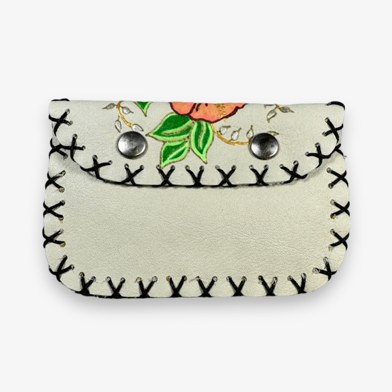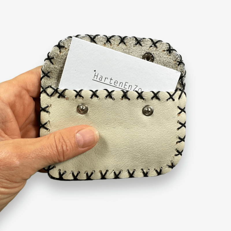Made from leftover leather. Equipped with 2 snaps and decorative studs.