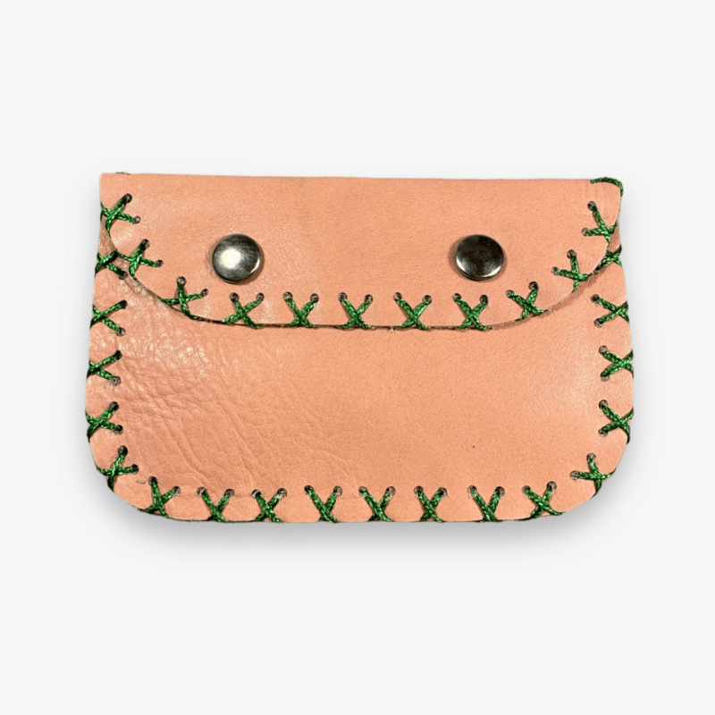 Made from leftover leather. Equipped with 2 snaps and decorative studs.