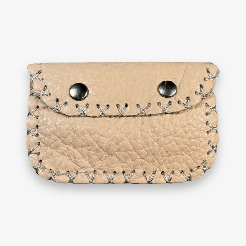 Made from leftover leather. Equipped with 2 snaps and decorative studs.